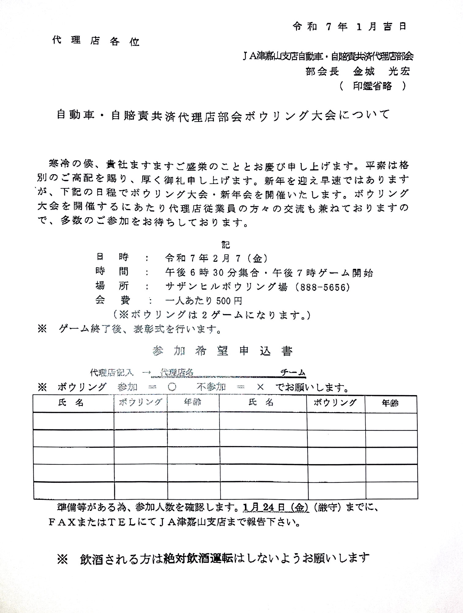 自動車・自賠責共済代理店部会ボウリング大会について お知らせ 2025.01.202025.01.22 このコンテンツはメンバーに限定されています。スタッフの場合は、ログインしてください。既存ユーザのログインユーザー名またはメールアドレスパスワード上に表示された文字を入力してください。 ログイン状態を保存する パスワードを忘れた場合 パスワードリセット